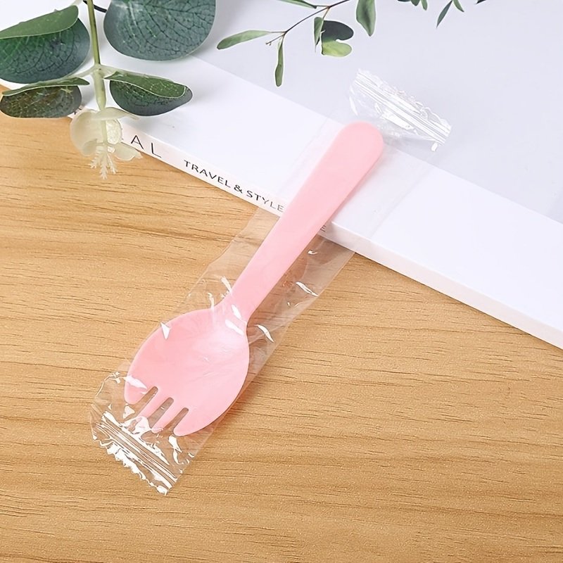 100pcs/set Disposable Plastic Spoons Forks For Cake Ice Cream Salad Fruit Dessert Soup Tea Coffee Party Cake Baking Shop Supplies