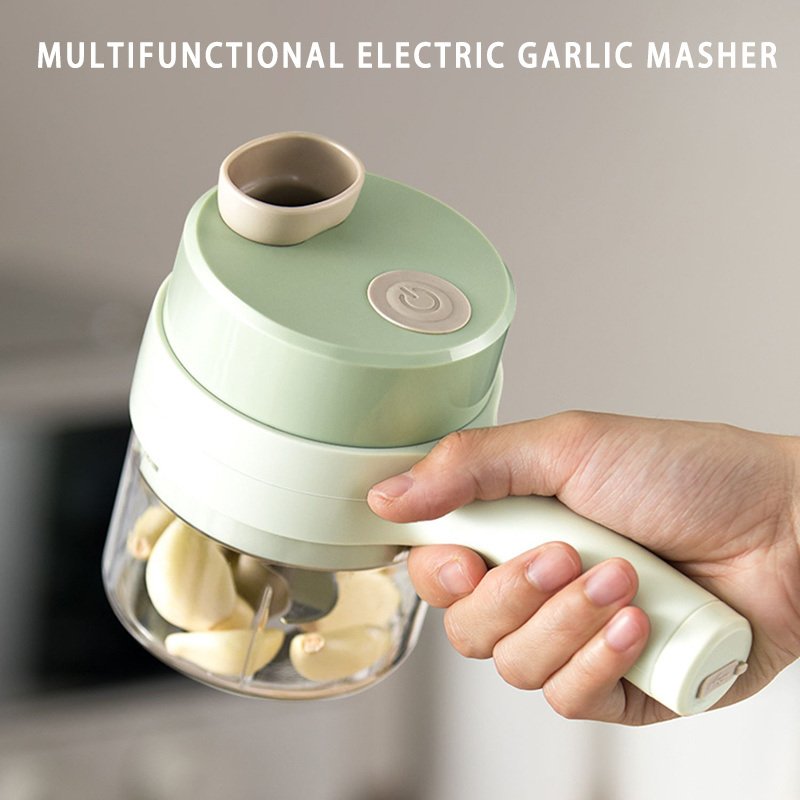 1pc 4 In 1 Vegetable Chopper Handheld Electric Vegetable Cutter Set Portable Wireless Garlic Mud Masher Garlic Press And Slicer Set