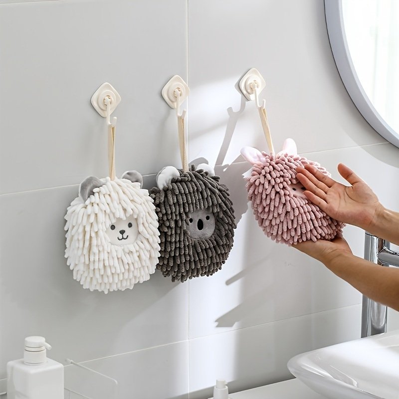 1pc Hand Towel Ball; Cartoon Hanging Towel; Quick Drying; Kitchen And Bathroom; Chenille Lovely Rag; Thickened Towel 6.69"×6.69"