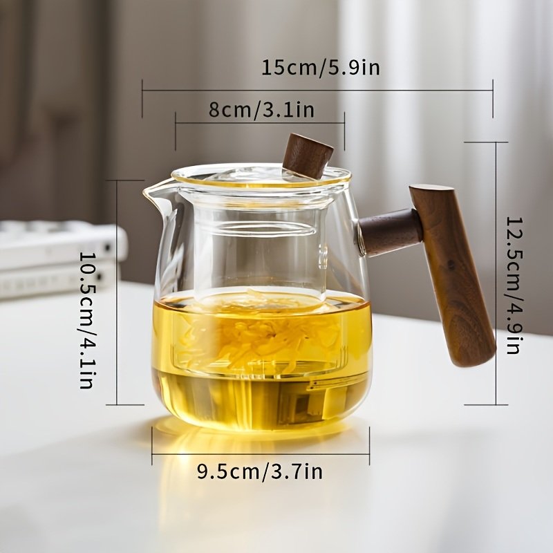 1pc High Borosilicate Heat-resistant Glass Teapot With Walnut Handle; 530ml/17.9oz; Removable Glass Filter; Transparent Tea Kettle