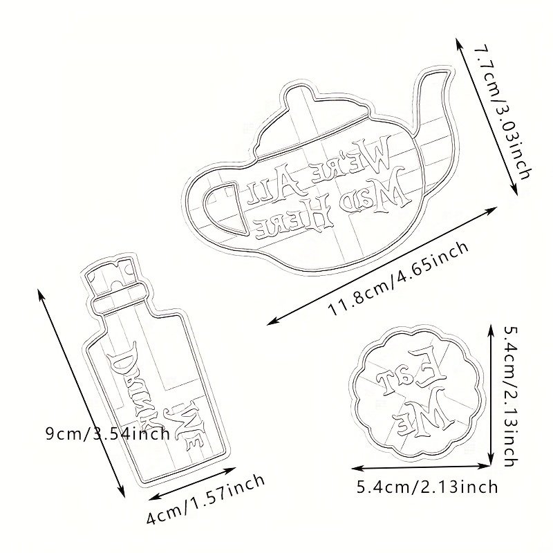 3pcs; Tea Party Cookie Cutters Set; Cartoon Teapot Wine Bottle Shaped Candy Mold; Biscuit Molds; Chocolate Cutters; Cake Decorating Molds;