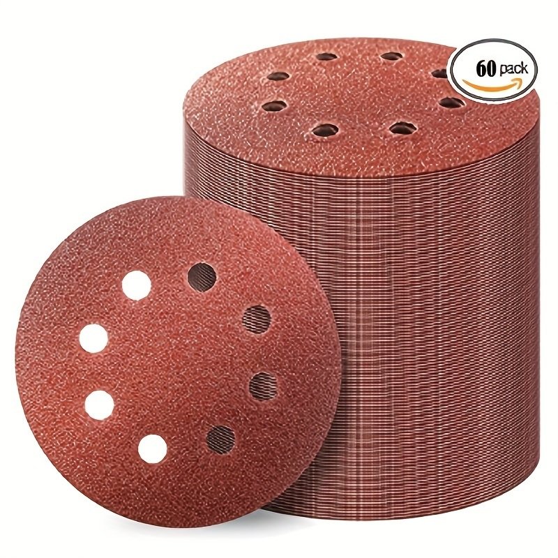 Home > 60pcs 5 Inch 8 Hole Hook And Loop Sanding Disc; 60 120 180 240 400 600 Grits Sand Paper For Random Orbital Sander; Sandpaper