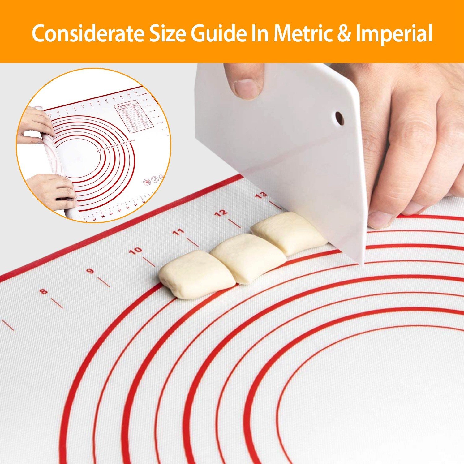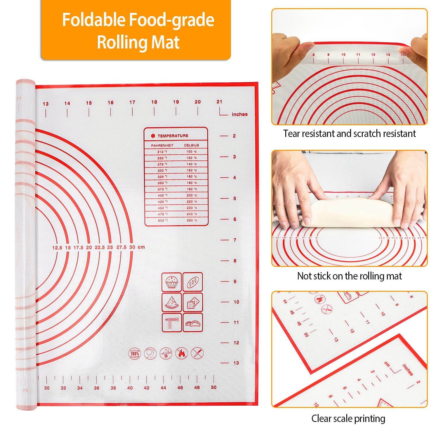 **FOOD GRADE SILICONE*:Our rolling mat is made of Food-Grade Silicone,no harm to the body,safe use for temperatures among -40℉-464℉,free of unpleasant chemical odors,providing you more time to enjoy your creations. No need to add extra flour or oil,our large nonstick sheet keeps work surfaces clean so you don’t have to spend hours scraping the dried dough off your countertops!