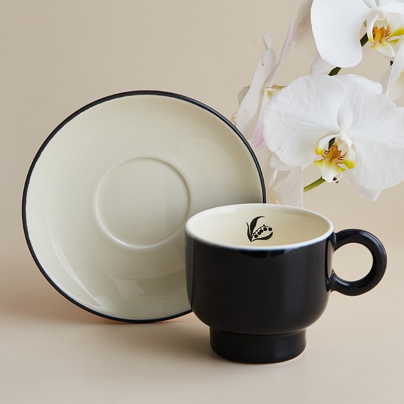 Home > Lily Of The Valley Ceramic Coffee Cup And Saucer Personality Retro Solid Color Black