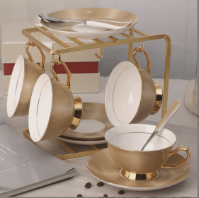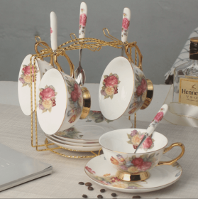 Coffee Cup Set English Black Tea Ceramic (Option: Golden flower-6pieces set)