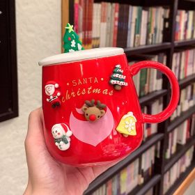 Ceramic Creative Home Coffee Cup With Lid Spoon (Option: Red-Christmas 3D stickers)