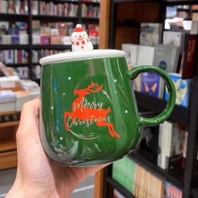 Ceramic Creative Home Coffee Cup With Lid Spoon (Option: Green-Christmas 3D stickers)