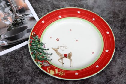 Christmas Tree Tableware European-style Small Luxury Household Ceramic Plate Western Dinner Plate (Option: Christmas 10.5inch red rim pl)